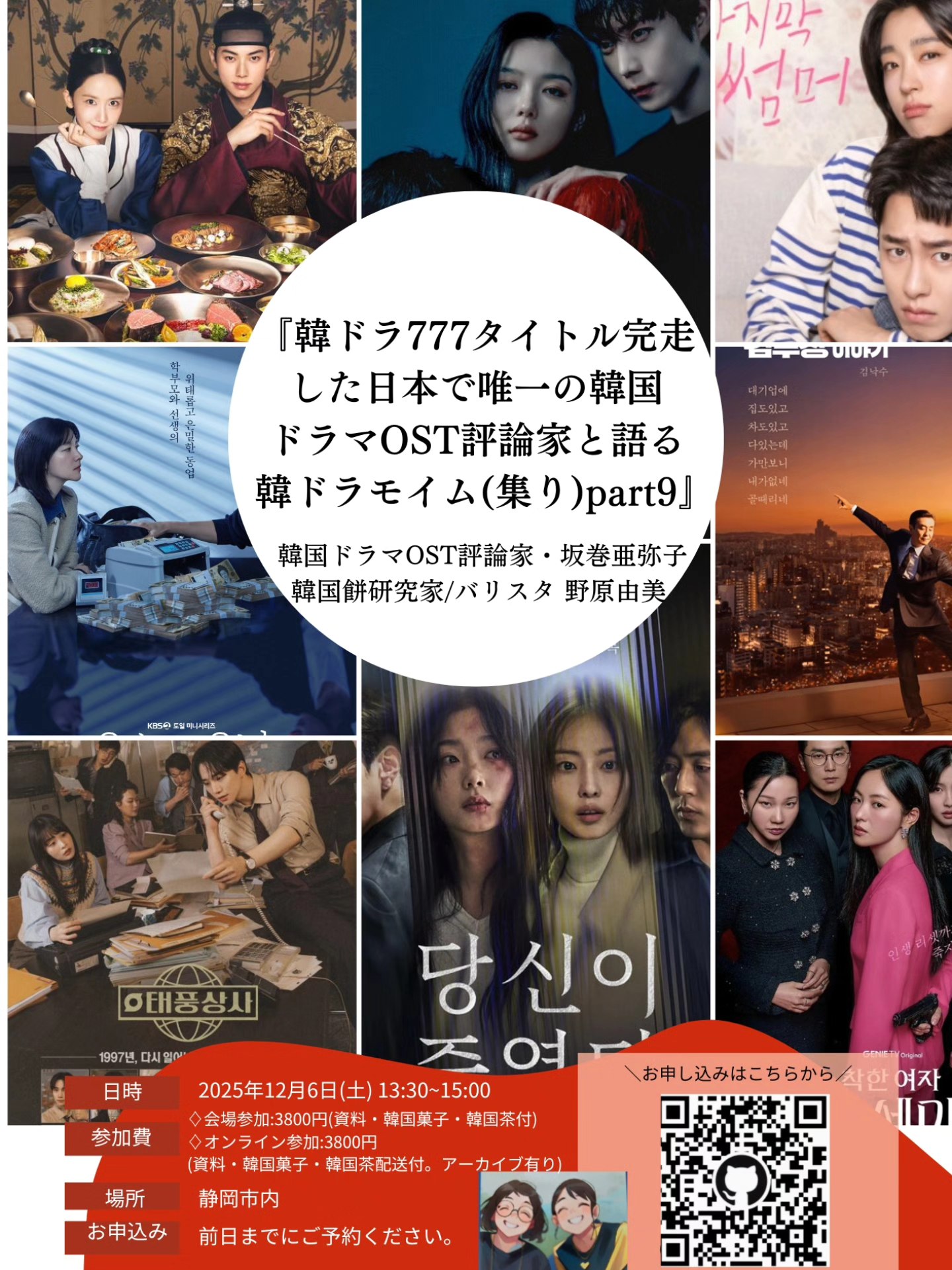 『韓ドラ777タイトル完走した日本で唯一の韓国ドラマOST評論家と語る韓ドラモイム(集り)part9』のお申し込みをスタートします!