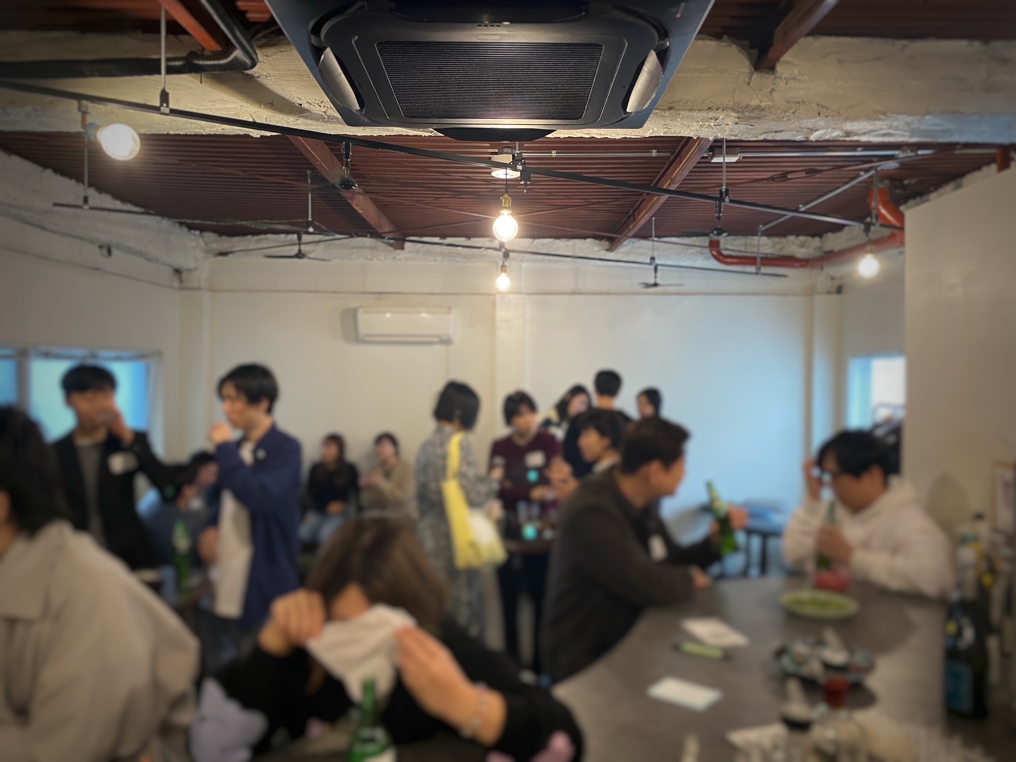 交流しやすいよう基本立食スタイルで、座りたい方はソファー席もありますので、ご活用ください。