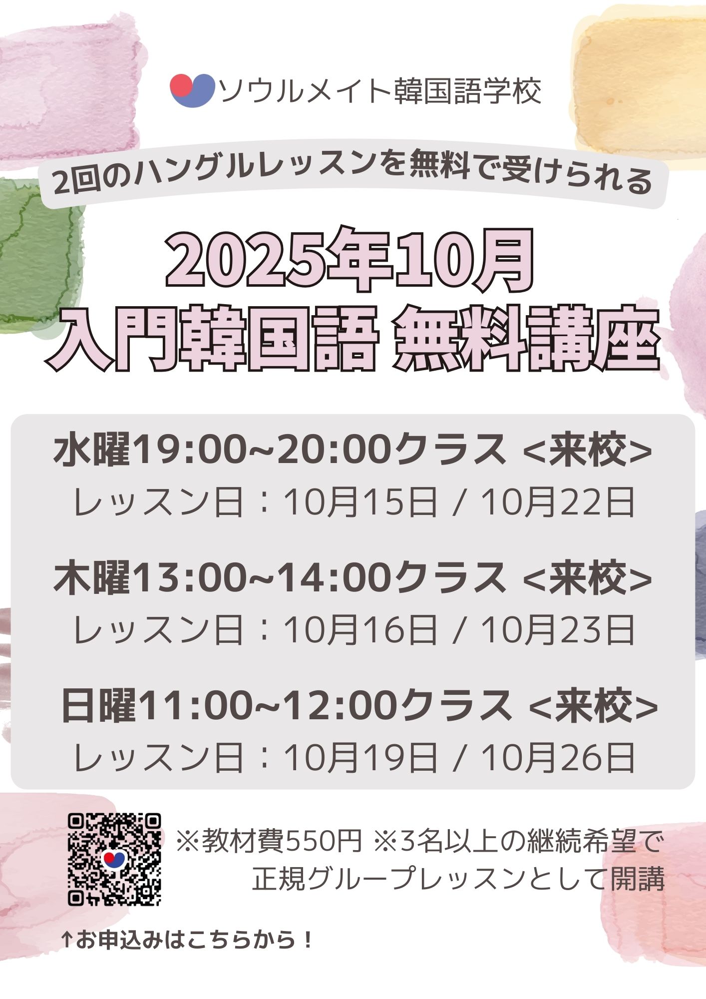 주최자 | ソウルメイト韓国語学校 | 주최자TEL | 03-6228-0330 | |