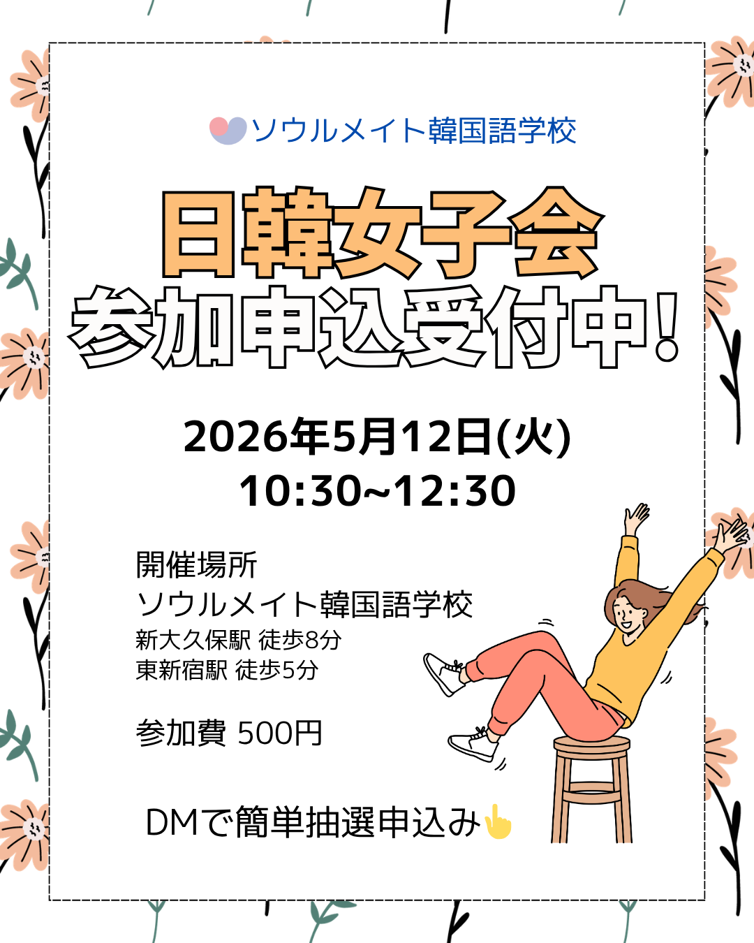 | <新大久保>女性だけの日韓交流会!日韓女子会 参加抽選申込受付中 | 2026-04-10 |