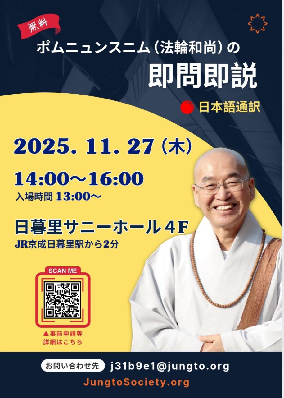 | 법륜스님 도쿄 강연/ポムニュンスニムの講演会 | 東京 | 2025.11.27~11.27 | |