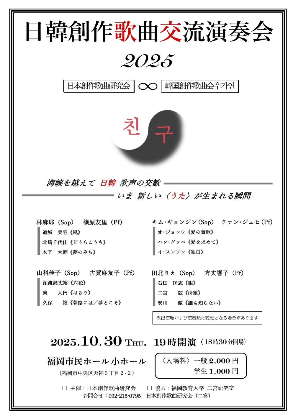 日韓創作歌曲交流演奏会2025 | 2025-10-09 |