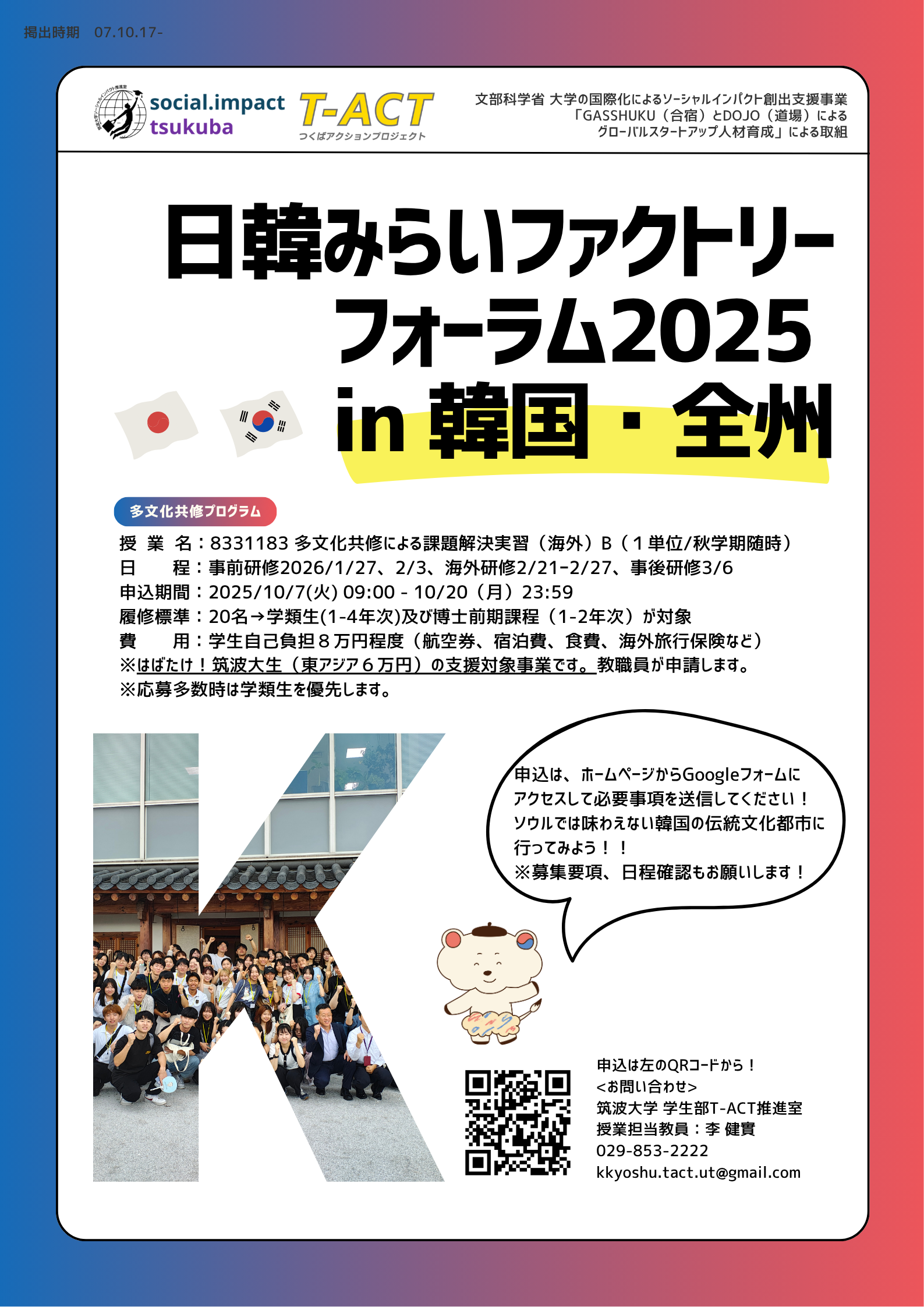 [参加者募集] 韓国・全州での多文化共修プログラム | 2025-10-21 |
