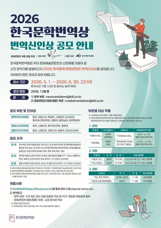 | 2026年韓国文学翻訳賞翻訳新人賞公募