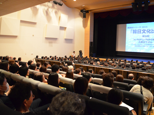 韓国文化院では、毎年ご好評いただいている講演会シリーズを今年も1月からお届けしております。今年は韓国と日本の国交正常化から50周年の節目を迎え、「お互いの文化の共通点と違いを正しく知り、交流に繋げる」という趣旨で「韓日文化比較」をメインテーマに全12回にわたってそれぞれの分野のエキスパートに語っていただいております。 第6回は日本でいち早くK-POP専門番組を立ち上げたことで知られ、日本におけるK-POPの第一人者と呼ばれる韓国大衆文化ジャーナリストの古家正亨さんをお招きして「K-POPとJ-POPの魅力」と題して、5月14日(木)ハンマダンホールにて開催されました。 講演当日は古家正亨さん自ら選曲・編集した両国の音楽を観客の皆さんに聞かせながら、K-POPとJ-POPがどのような過程を経て成長し、お互いにどんな影響を与え合ってきたかを国交正常化以降50年間の両国の音楽の流れとともに話していただきました。特に「今後は、K-POPとJ-POPが競争相手ではなく、お互いが持っている魅力と個性を活かして共同制作を積極的にして欲しい。そして、’アジアPOP’というジャンルとして世界の舞台で一緒に活躍する姿を見届けるのが私の夢です。」と文化交流の理想的な方向性を述べ、喝采を浴びました。 次の講演会シリーズは、6月11日(木)に、国際交流基金顧問・元駐韓国大使の小倉和夫さんをお招きして、「日本人の韓国観の変遷」について語っていただきます。どうぞご期待ください。