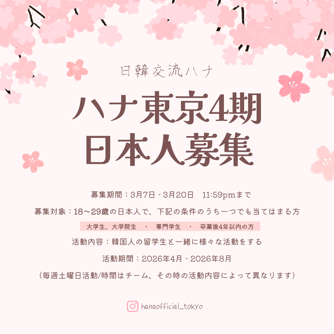日韓交流ハナ東京4期 日本人メンバー募集 2026-03-10