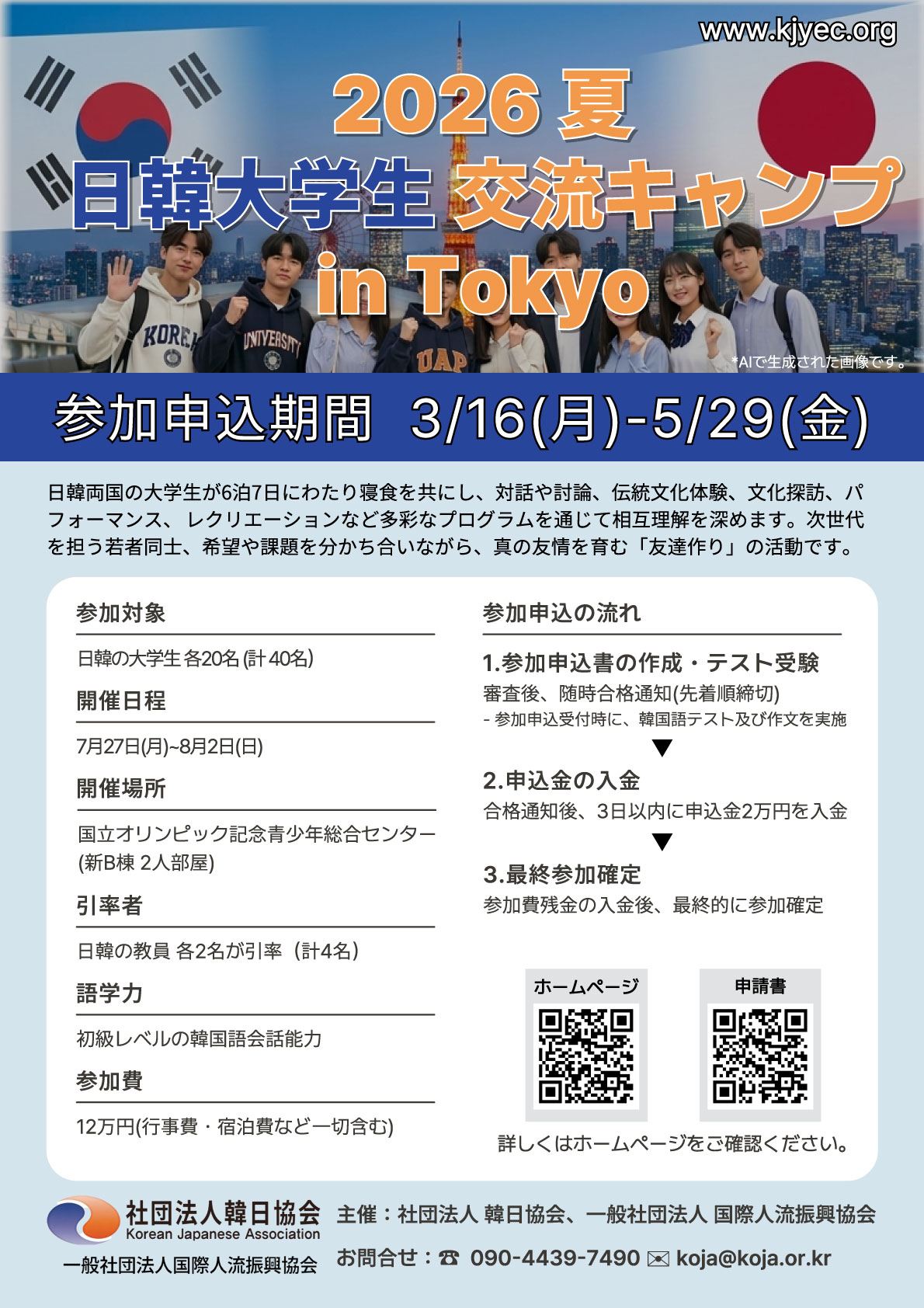 2026 夏 日韓大学生交流キャンプ in Tokyo 2026-04-08