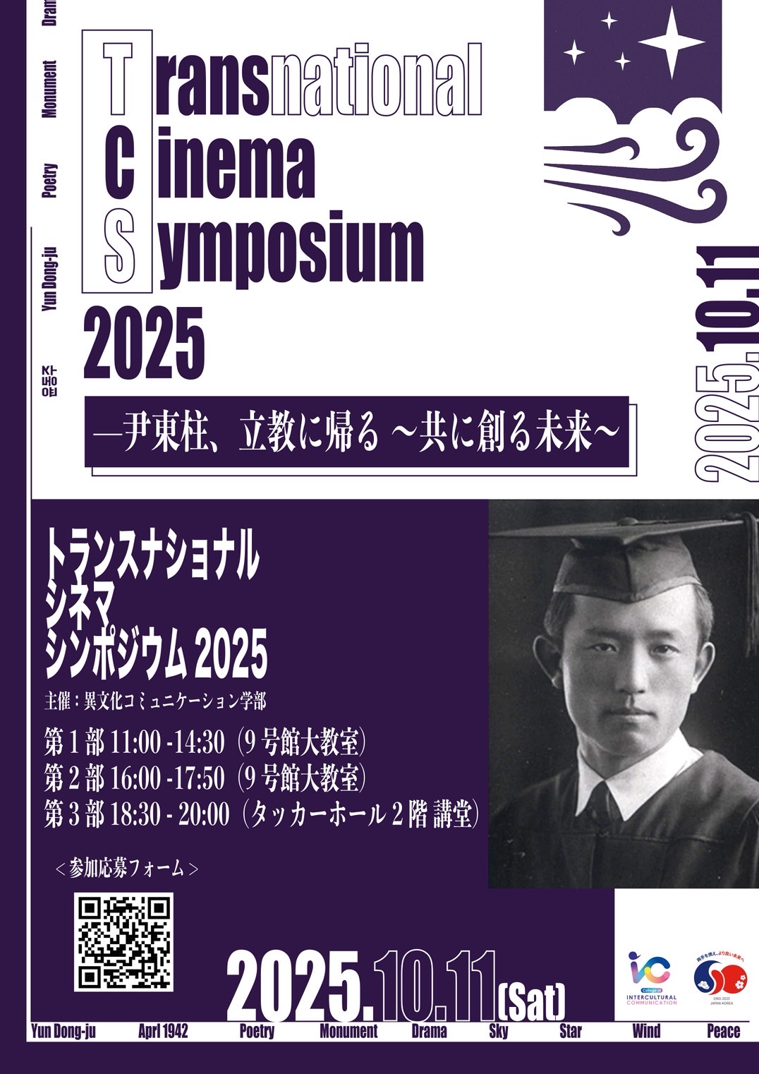2025年トランスナショナル・シネマ・シンポジウムは、日韓国交正常化60年、詩人ユン・ドンジュの逝去80周年となる年に建てられる立教大学ユン・ドンジュ記念碑の竣工日に、異文化コミュニケーション学部を始め立教大学の学生が、ユン・ドンジュの詩と人生について学ぶことを目指して企画しました。