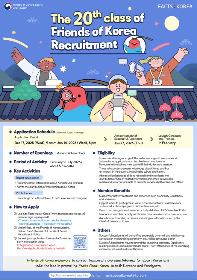 韓国に関する誤った情報やイメージを修正し、「正しい韓国」を伝えるために積極的に活動してくださる方々のたくさんのご応募お待ちしております。