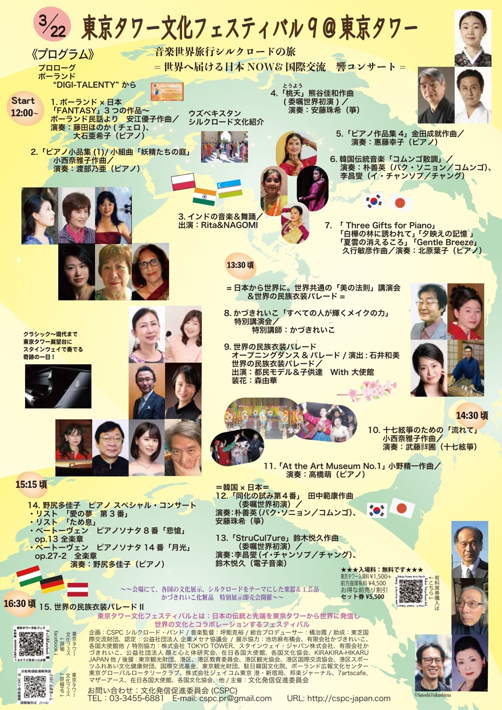 Sunyoung Bark (Komungo)、Changseop Lee(Janggu)、安藤珠希(箏)野尻多佳子(ピアノ)藤田ほのか(チェロ) 大石亜希子(ピアノ) 渡部乃亜(ピアノ) 惠藤幸子(ピアノ) 北原葉子(ピアノ) 武藤祥圃(十七絃箏) 高橋萌(ピアノ) 鈴木悦久(電子音楽) Rita&NAGOMI(インドの音楽&舞踊) 小西奈雅子(作曲) 熊谷佳和(作曲) 金田成就(作曲) 久行敏彦(作曲) 小西奈雅子(作曲) 小野精一(作曲) 田中範康(作曲) 鈴木悦久(作曲) 森由華(池坊華道展示) かづきれいこ(特別講演会講師)、坪能克裕(音楽監督)橘治霞(総合プロデューサー)