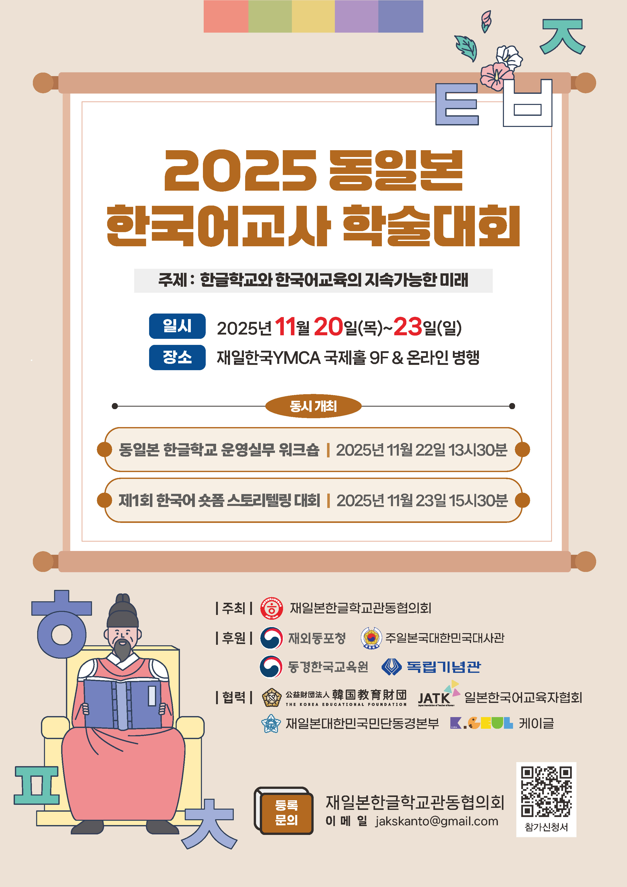| 2025年東日本韓国語教師 教育研究 学術大会 & ハングル学校 ワークショップ 開催案内 | 2025-11-15 |