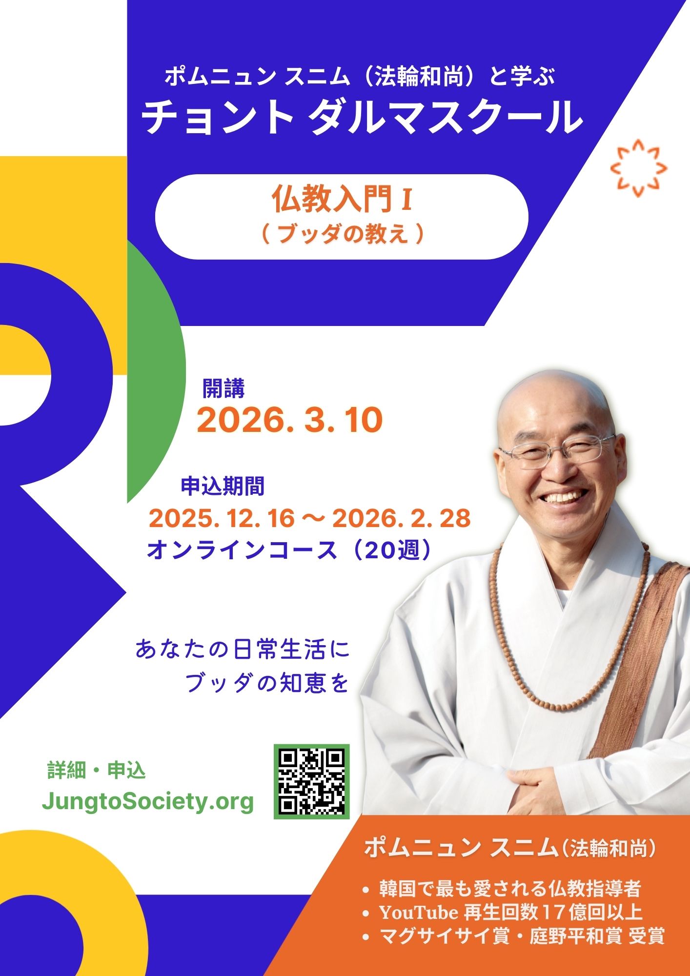 | ポムニュンスニムと学ぶチョントダルマスクール | 2026-02-02 |