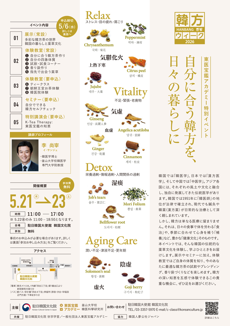 | ❐ | 주최:주일한국대사관 한국문화원、부산대학교 한의과학연구소 동의보감아카데미 |