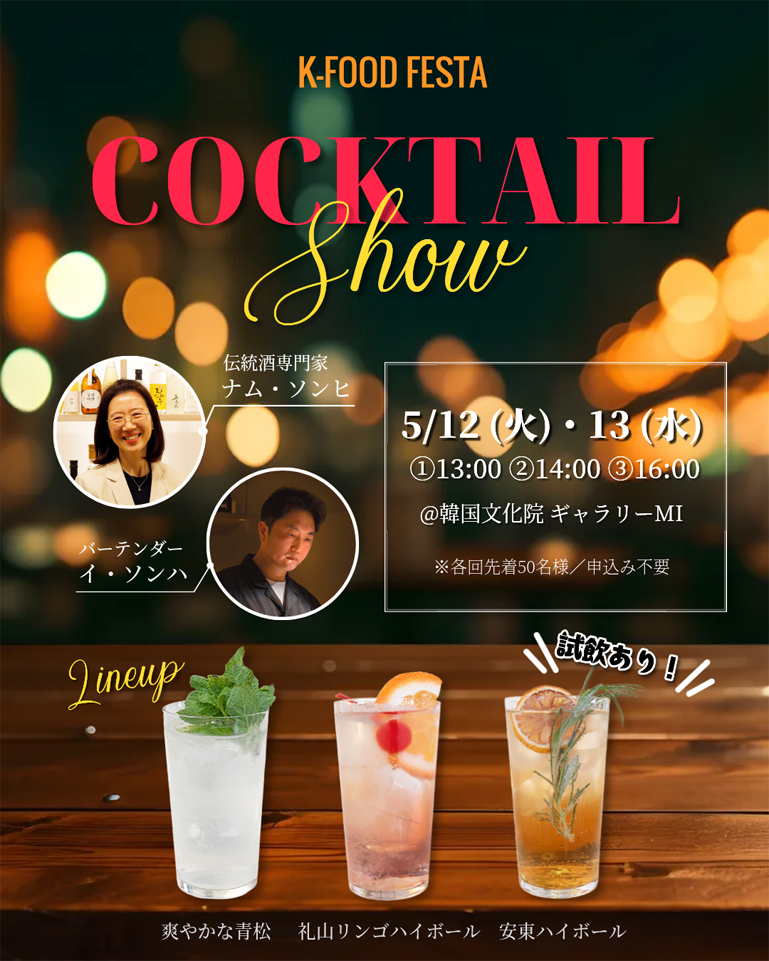| K-FOOD FESTA 연계 행사〜전통주 칵테일쇼 | 26.04.27 |