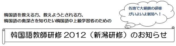 | 韓国語教師研修2012(新潟研修)のお知らせ | 12.05.17 |